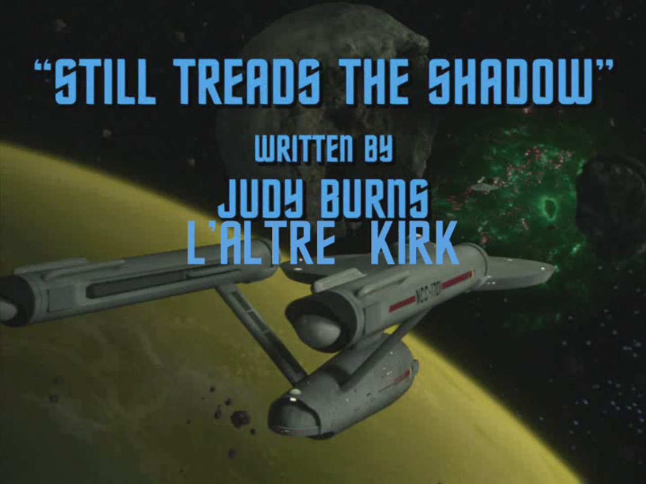 Aquesta vinyeta significa també un nou començament de la temporada 4 i que introdueix ľactor Brian Gross com el nou James T. Kirk, una USS Enterprise restaurada, i la primera aparició del tinent Arex, personatge regular a Star Trek: La sèrie animada.